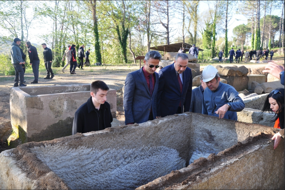 Bölümümüz öğretim üyesi Prof. Dr. Şahin Yıldırım tarafından, Filyos'ta yürütülen Tios Antik Kenti kazısında, nekropolde Roma döneminden kalan 2000 yıllık lahitler açıldı. Lahitler açılırken rektörümüz Prof. Dr. Ahmet Akkaya, Zonguldak Valisi Osman Hacıbektaşoğlu, Zonguldak Milletvekili Ahmet Çolakoğlu, Çaycuma Kaymakamı Adem Kaya, Filyos Belediye Başkanı Erol Acar da yer aldı. Buna ek olarak Prof. Dr. Şahin Yıldırım, özgün mimari dokusu korunarak kazı alanında şimdiye kadar 96 lahit, 23 oda, 7 sanduka ve 60 çatkı kiremit mezar tespit edildiğini, toplam 1317 eserin gün yüzüne çıkarıldığını aktardı. Roma Dönemi’ne tarihlenen geniş nekropol alanında, yaklaşık 500 metre uzunluğundaki antik caddenin her iki yanında sıralanan lahitler ve yamaçlara oyulmuş oda mezarlar incelendi. Ziyaret kapsamında Tios Antik Kenti’nin korunması ve turizme kazandırılması noktasında yapılabilecekler üzerine görüş alışverişinde de bulunuldu.